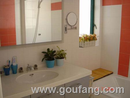 點評:小面積衛(wèi)浴間最忌陰暗,會使原本就不大的空間看上去更加狹小。如此一來,衛(wèi)浴間的采光是否良好就顯得尤為重要,窗戶明亮,同時淺色瓷磚反射光線,增加了空間的通透感,不失為擴(kuò)大視覺效果的好方法。