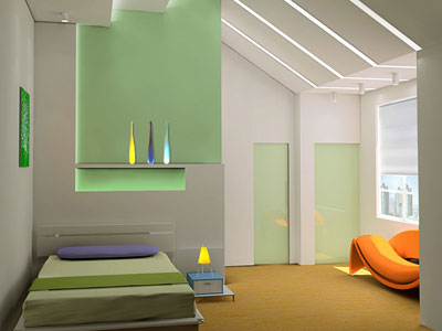 子女房與主臥最大的區(qū)別就在于設(shè)計上要保持相當程度的靈活性。子女房只要在區(qū)域上為他們做一個大體的界定,分出大致的休息區(qū)、閱讀區(qū)及衣物儲藏區(qū)就足夠了。在室內(nèi)色彩上吸引孩子是設(shè)計子女房的要點。兒童房間容易弄臟,裝飾時應采用可以清洗及更換的材料,最適合裝飾兒童房間的材料是防水漆和塑料板,而高級壁紙及薄木板等不宜使用。