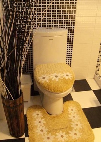 黑色、紫色,花卉,一派自然中繁榮的景象,把它們運(yùn)用在衛(wèi)生間中也一樣溫馨,再配上幾只紅白色花卉和帶有神秘感的紫色線(xiàn)簾,更顯得素雅、別致。