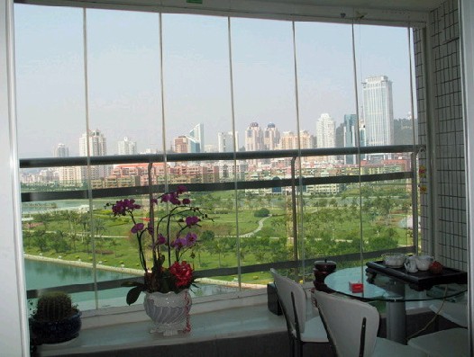 無框陽臺窗使陽臺具有很強的實用性,它能非常有效地擋風遮雨,隔斷塵埃和噪音;合理的結構使每扇窗都能夠向內開啟,不必把身體探出外面擦窗,清洗十分安全、簡單。