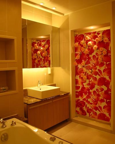 如果衛(wèi)生間較大,可將便器安排在自門口處望不到的位置,隱于矮墻、屏風(fēng)和布簾之后,當(dāng)然還要確保從任何鏡子上都看不見它。不過(guò),在一般的住宅中,衛(wèi)生間的排污口已經(jīng)定位,不易改動(dòng)。如果要改變便器的朝向,就一定要十分注意排污管的坡度,以免堵塞。除了便器,在衛(wèi)生間占據(jù)重要地位的莫過(guò)于浴盆。