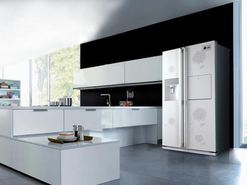 拿LG的一款09年對開門冰箱新品GR-P2075THN為例,它率先將象征著“幸福的希望”的繡球花紋運用在VCM面板上,改變原有單一設(shè)計,采用傳統(tǒng)山水寫意畫法,使繡球花束與機身渾然一體,為廚房營造出一分寧靜、溫馨、自然的氣息。其LG無邊框的輕觸式吧臺設(shè)計尤顯簡潔美觀,其觸摸式按鈕由大顆施華洛世奇元素鑲嵌而成,散發(fā)著迷人的光芒,不失為整個廚房設(shè)計中的點睛之筆。另外,吧臺左側(cè)的自動飲水/制冰機擁有23cm超高空間,不管手持多大水杯都可方便取用,而創(chuàng)新單出口的設(shè)計,不僅方便大容量出水、出冰,而且更時尚、健康。而設(shè)計于自動飲水/制冰機上方的LED觸摸式顯示屏設(shè)計散發(fā)著智能科技的動感效果,操作起來將便捷發(fā)揮到極致。