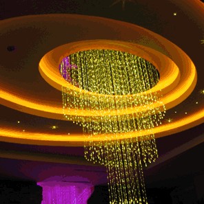 燈具的小部分光通(10%以下)向下。設(shè)計得好時,全部天棚成為一個照明光源,達到柔和無陰影的照明效果,由于燈具向下光通很少,只要布置合理,直接眩光與反射眩光都很小。此類燈具的光通利用率比前面四種都低。