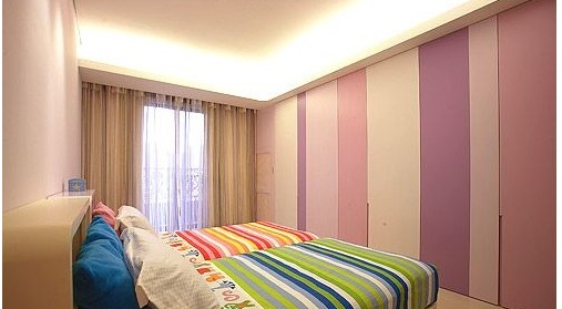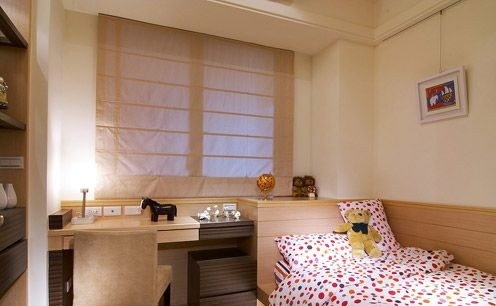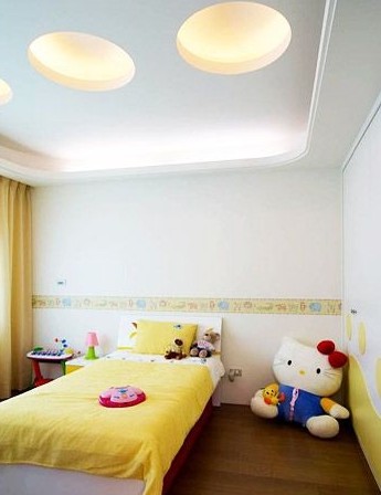 還在讀幼兒園的小女孩的房間利用線條顏色勾勒出小女生活潑的感覺(jué),用曲線圓形來(lái)突顯兒童的趣味性,窗戶的設(shè)計(jì)也以弧度的轉(zhuǎn)角來(lái)修飾。