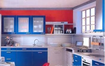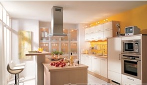 如今設計師的創(chuàng)意能將整個廚房都藏了起來:在一字形或L形櫥柜 兩側分別設計一個立式儲物柜,此柜 的四面能依次拉伸,組合成一扇長長的柜門,需要時,就可 將此四扇門向中間合攏,將中間的工作臺、吊柜和地柜都掩藏起來。