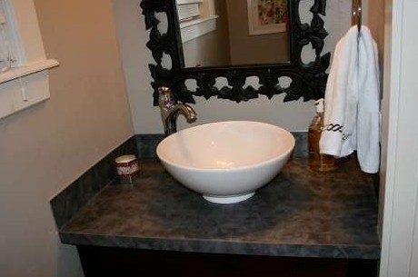 有時一個小的變化可以有很大的不同。在基爾斯滕格羅夫的浴室情況下,墻紙和油漆是他改造的所有花費?;鶢査闺脑∈也皇遣缓茫枰o它的東西多一點視覺趣味。因此,她的丈夫熱衷于明快的感覺,干凈的白色和個復雜的錦緞作為天花板壁紙,基爾斯滕還因此自豪的粉刷一個大膽的陽光黃色鏡墻。