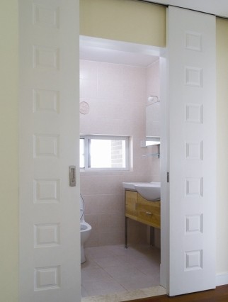 木制移門,最好把移門、導(dǎo)軌設(shè)計(jì)在衛(wèi)浴間外面,不易濺到水,使用壽命比放在里面長(zhǎng)。