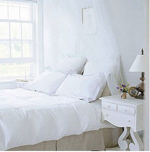 房間的顏色可以用一個詞形容“單調”。中性色彩是大多數(shù)臥室采用的——白色的主色調,如果其他的裝飾品如枕頭用玫瑰粉色,再加一點橙色,就會使色調更加亮麗,增添新婚的浪漫感覺。