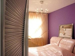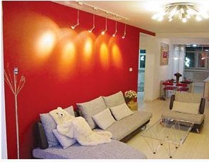 紅色紫色的效果不錯(cuò),不過(guò)在后期搭配上還需要做些工作:長(zhǎng)時(shí)間面對(duì)紅色容易產(chǎn)生視覺(jué)疲勞,所以我家客廳的紅墻是在客廳沙發(fā)的后面;廚房是開(kāi)放式的,跟餐廳、客廳成一直線,為了達(dá)到統(tǒng)一,櫥柜、餐桌也用了紅色;玄關(guān),因?yàn)榭臻g有限,沒(méi)用屏風(fēng),而是用了一串一串的水晶球,燈光照射下,有一種夢(mèng)幻的感覺(jué)。陽(yáng)臺(tái)是我比較喜歡的,有落地的一整塊弧形玻璃窗,采光非常好——在北方寒冷的冬天,陽(yáng)光是非常重要的——我們把它改造成了一個(gè)地面是玻璃臺(tái)階的陽(yáng)光房,玻璃上鋪一塊羊毛地毯,再放幾個(gè)靠背枕,就可以在那里舒舒服服地曬太陽(yáng)看書(shū)了;臥室用了紫色,代表著神秘、浪漫,另一間臥室現(xiàn)在身兼數(shù)職,即是更衣室,又是書(shū)房,還是客房。