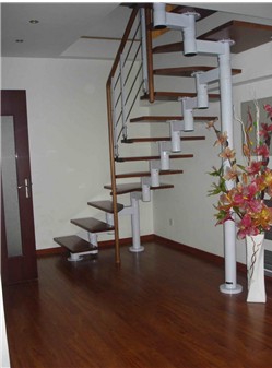 造型樓梯:樓梯本身也是置物層架與收納箱,透過條紋壁紙作立面區(qū)隔,感覺輕盈活潑。
