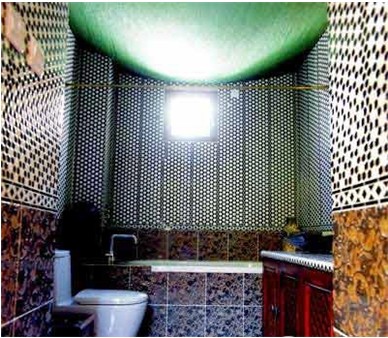 另外值得注意的是衛(wèi)浴間的面積大小、通透與否決定著馬賽克色彩的選擇。通常面積較大的衛(wèi)生間適合選擇氣勢磅礴的馬賽克拼貼圖案。如流瀑式深淺相間的條紋馬賽克就非常適合空間敞亮的衛(wèi)浴間。而面積較小的衛(wèi)浴空間則盡可能選擇清淡的配色,這樣可以避免衛(wèi)浴間顯得過于擁擠。同時(shí),小花紋的選擇也能給小型衛(wèi)浴間增加一些靈氣,彌補(bǔ)小型衛(wèi)浴間采光和通風(fēng)相對不足的弱點(diǎn)。