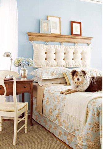 家居賣場會有耐磨的彩條紋掛毯,既可當(dāng)墊子鋪在沙發(fā)上也可鋪在地上當(dāng)腳墊,我們可以開發(fā)它的全新用途。挑選一塊比床頭板稍窄一些的掛毯直接搭在床頭上,兩邊分別用窗簾鉤夾將毯子固定在床柱上,并用絲帶系出蝴蝶結(jié)。一個粗獷中帶點溫馨感的新床頭就誕生了。