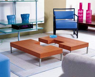 該款組合茶幾為櫻桃木材質(zhì),尺寸是100cm×100cm×50cm。簡(jiǎn)潔金屬支腿使它顯得形體輕便,主人可以根據(jù)沙發(fā)座次的調(diào)整,隨意組拼形狀。