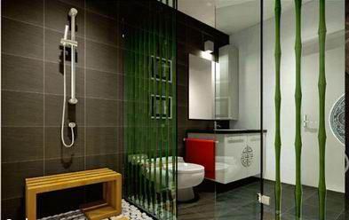 兼具掩飾面盆管道與使用儲物功能的洗面臺柜,玻璃隔斷上附著的竹子沿襲了中國文化中堅韌挺拔的精神,玻璃隔斷讓空間干濕分離,腳下的鵝卵石既有園林情懷又起到了按摩的功效,精巧別致的空間布局賞心悅目。白色潔具在黑色的映襯下愈發(fā)顯得纖塵不染。 裝修知識 裝潢www.thewomensblog.com
