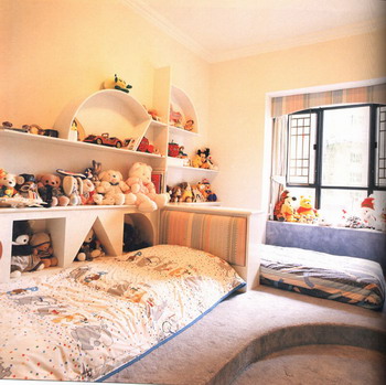 把孩子的空間設(shè)計得五彩繽紛,不僅適合兒童天真的心理,而且鮮艷的色彩在其中會洋溢起希望與生機。對于性格軟弱過于內(nèi)向的孩子,宜采用對比強烈的顏色,刺激神經(jīng)的發(fā)育。而對于性格太暴躁的兒童,淡雅的顏色,則有助于塑造健康的心態(tài)。