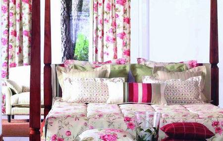 如果客廳家具是以板式家具為主,宜選用質(zhì)地輕薄、色澤亮麗明快的印花布窗簾。如果你喜歡春天嬉戲于百花中的感覺,不妨試一試今年比較流行的ART DECO 裝飾風(fēng)格,選用一款色彩淡雅的團(tuán)花窗簾來迎接春天明媚的陽光。
