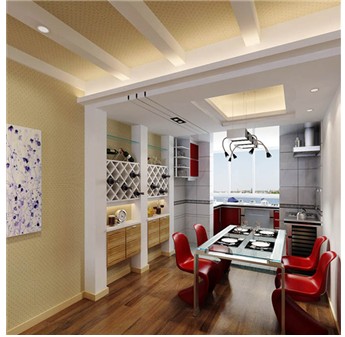 餐飲區(qū)域是專業(yè)性區(qū)域,包括廚房和餐廳,一般應配置廚房廚具及餐桌椅,有的還需設置酒柜、吧臺等。廚房是家庭主婦日常生活中使用最多的空間,餐廳又是家人團聚的場所,因而,該區(qū)的裝修設計最能家庭生活的舒適與溫馨程度,應是裝修設計的重點。