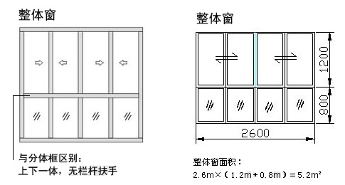 整體窗面積=平移窗寬度×(平移窗實際高度+下固定窗實際高度)