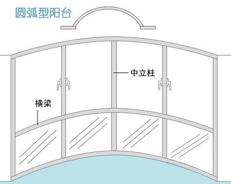?。▓A弧型陽臺窗也有中立柱、橫梁,其數(shù)量、尺寸主要是看陽臺大、小來定。)