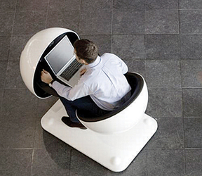 當(dāng)需要的時候,只要將其中一個半球掀開,呈現(xiàn)在你面前的就是一張電腦桌和一把椅子,這樣你就可以坐下來輕松自如地操作電腦了。這張球形電腦桌,可以放置在一些商務(wù)人士較多的場所供人們使用,它不僅美觀大方,還容易打理,且不易沾灰塵,很不錯哦。裝飾裝修
