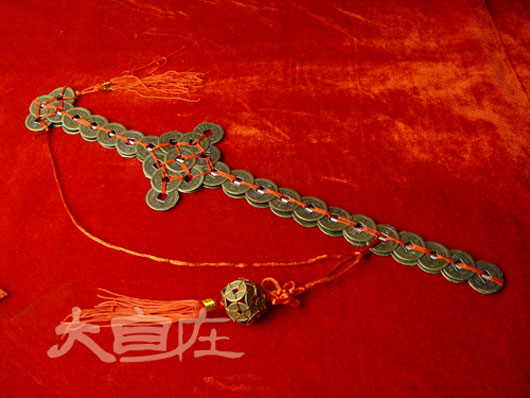 而銅錢劍亦可用作為風(fēng)水工具之用。銅錢劍不是真劍,而是由銅錢串成的劍型,把一把銅錢劍懸掛于家宅內(nèi),具有區(qū)魔伏妖趕鬼之功。當(dāng)然,如果家宅具的是「猛鬼屋」,區(qū)區(qū)一柄銅錢劍,起不了多少作用。但若只是稍有陰靈犯宅之象,則銅錢劍亦能起到作用,只要將銅錢劍至于鬼門東北方,便有驅(qū)鬼作用之能力。