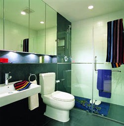 質(zhì)地輕盈、不易破碎、通透如水晶的樹脂玻璃是制作隔斷和推拉門的最時尚材料,用樹脂玻璃在衛(wèi)浴中靈活地將干濕區(qū)分隔開來,輕巧美觀的同時,也能最大限度地利用空間。