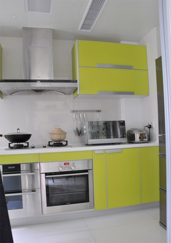 一般家居由于廚房的空間不大,所以色彩較淡的廚具較受歡迎,如綠色、淺灰色。在廚具表面的材質(zhì)方面以耐火板為主流。改良后的耐火板不僅光彩奪目,其耐熱、耐用性能更有顯著提高,一改以往質(zhì)弱印象。成套廚具在儲(chǔ)物功能設(shè)計(jì)上亦愈顯精心、精密,一掃以往零亂、難尋的窘境。