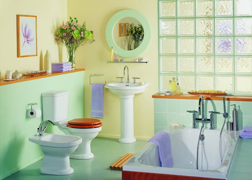 塑料是衛(wèi)生間里最受歡迎的材料,色彩艷麗且不容易受到潮濕空氣的影響,清潔方便。這一組綠色的器皿包括紙巾盒、肥皂盒、廢物盒,還有一個(gè)裝雜物的小托盤。在不同風(fēng)格的衛(wèi)生間搭配不同的色彩,也是一種流行。
