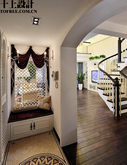 概要: 純美公主式大宅油畫色彩 進門的玄關處,諾大的鞋柜可以滿足一家人的需求,這個軟墊設計很貼心,可以坐著換鞋,又可擋一下鏤空的隔斷與客廳相連的部分。這里需要強調(diào)一下這個鏤空的隔斷了,透氣性非常好,讓小空間里也很如此舒適。
