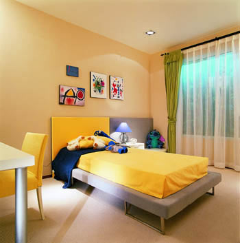 臥室:一般無(wú)須燈光太多,應(yīng)注重氣氛的融入。主光源為一般照明度,色調(diào)宜暗偏暖,使人感到平和、寧?kù)o,具有溫存感,不要用光線刺眼的燈具,減少室內(nèi)色彩的對(duì)比度也是很重要的。次光源光度應(yīng)大些,作為局部照明使用,如落地?zé)?、臺(tái)燈、床頭射燈等,讓臥室輕松、和諧而神秘。