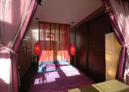 臥室是夫妻兩人的私密空間,如何做到空間功能的區(qū)分同時又不影響整體美觀呢。這里設(shè)計師有一個設(shè)計亮點(diǎn),就是這個半通透的隔斷。在小空間住宅的室內(nèi)設(shè)計當(dāng)中,儲物空間是必不可少且最 難安排的。設(shè)計師為了能充分利用空間,且讓小小的空間顯得更為整潔,就在臥室、起居室及餐廳的一側(cè),整體規(guī)劃出一組巨大的儲物柜,來滿足業(yè)主的存儲需求。