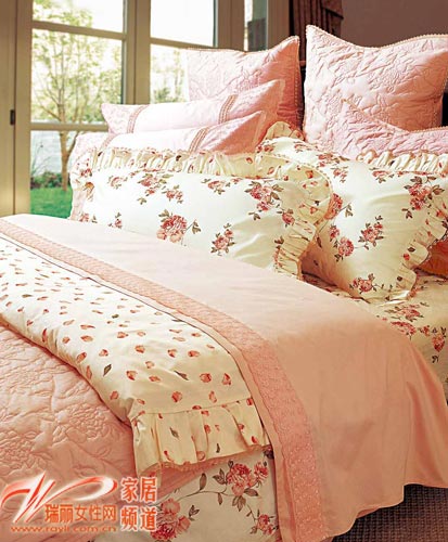 初夏的和風(fēng)緩緩吹過,不僅吹開了姹紫嫣紅的花朵,也吹開了臥房里嬌美妖嬈的花色床品。本季的床品依舊延續(xù)去年花卉圖案的熱潮,在花朵設(shè)計(jì)上既可以一枝獨(dú)秀,也可以組合成景,可以碎花纏綿,也可以花邊蕩漾,以各種姿態(tài)盛開的花朵,演繹初夏臥室的百變嬌艷。上海裝潢網(wǎng)