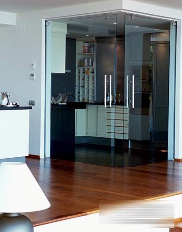 這是一間位于西班牙巴塞羅那的一間屋,屋主為他的廚房安裝了兩扇透明玻璃落地門,廚房也就變成半開放式。喜歡的話盡可以把玻璃門打開,加強(qiáng)室內(nèi)的空間感,做飯的時(shí)候只要關(guān)上門,西班牙菜的獨(dú)特香味和煮食時(shí)的噪音就能只保留在廚房中,絕不會(huì)傳到外面的生活間。這個(gè)設(shè)計(jì)的好處是,男屋主可以安靜地安坐在生活間中,透過(guò)大玻璃趟門欣賞女主人在做飯時(shí)的一舉一動(dòng),不會(huì)因?yàn)榭臻g的分隔而使人與人之間的生活也被分隔掉。順帶一提,廚房的地板是黑色的花崗石,與生活間的木地板形成強(qiáng)列對(duì)比,但是透過(guò)玻璃趟門的點(diǎn)點(diǎn)折射,卻成為一種優(yōu)美的點(diǎn)綴。