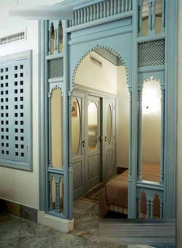 這一扇充滿獨(dú)特北非風(fēng)情味道的“門”位于北非突尼西亞,一間改建自Sidi-Boud-Said酒店的屋子內(nèi)。說(shuō)這是一扇門,大家可能不會(huì)太認(rèn)同(因?yàn)闆](méi)有門板和門鎖),但是這扇配合了拱門風(fēng)格的灰藍(lán)色門巧妙地將兩個(gè)不同的空間分割,讓睡房被分隔開來(lái),營(yíng)造出睡房寧?kù)o祥和的感覺(jué)。門本身手工細(xì)致,制作者在木上刻畫出充滿了突尼西亞的風(fēng)情,沒(méi)有門板,更多陽(yáng)光就能透進(jìn)睡房?jī)?nèi),配上白色和米黃色的墻身及云石地板,顯露出一派低調(diào)的高貴典雅。