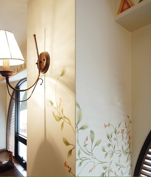 A:第一次畫難免會不熟練,建議可以參考花布或花草圖案,將喜歡的花草放大后,描在墻面上,然后上色。