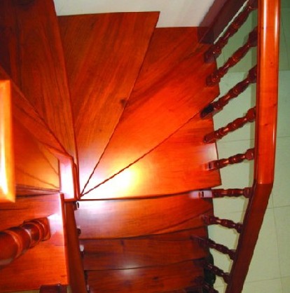 注:樓梯地板如果面積過大,務(wù)必采用齒拼拼板技術(shù)(常見為暗齒,也有少數(shù)廠家采用集成材式的明齒)以防止木材因板面大受濕度和氣溫等環(huán)境影響而變形。 另外異形地板對(duì)木材紋理要求嚴(yán)格,選購時(shí)一定要注意。