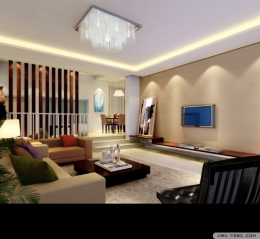 此種吊頂可用木材夾板成型,設(shè)計(jì)成各種形狀,再配以射燈和筒燈,在不吊頂?shù)闹虚g部分配上較新穎的吸頂燈,會(huì)使人覺得房間空間增高了,尤其是面積較大的客廳,效果會(huì)更好。