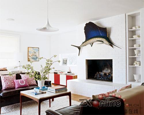 男主人和女主人都有收藏藝術(shù)品的愛好,所以,設(shè)計(jì)一片展示自己心愛之物的空間是夫妻二人的共同想法。為此,他們拆掉了原來房間顏色暗沉的墻面嵌板和人造木橫梁,挪走了嵌在墻壁和屋頂之間的石膏吊頂,然后將背景色調(diào)重新粉刷成白色。“白色讓人精神振作,而且明亮的感覺使人心情愉快,還總是顯得那么干凈。”除了上述理由,女主人對(duì)白色的情有獨(dú)鐘也另有一番原因。“白色提供了未來多種變化性的可能,我們可以隨意把一間屋子的家居換到另一件,因?yàn)橹鞅呈蔷鞍咨?,因此就不存在色調(diào)沖突的問題?!?上海裝潢網(wǎng)