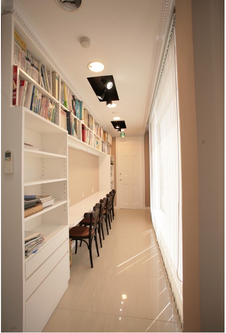 書(shū)房的功能,要求它要有良好的采光。如果白天使用書(shū)房,自然光的方向與亮度,都是要十分注意的。一般來(lái)講,寫(xiě)字時(shí)的光最好來(lái)自左上方。為方便晚上使用,書(shū)房的人工采光一定要完善。一般可以在寫(xiě)字臺(tái)上方設(shè)置一個(gè)房間主光源,還要在臺(tái)上設(shè)置一個(gè)專門(mén)用來(lái)給工作區(qū)照明的臺(tái)燈。
