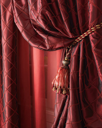 懷舊奢華復(fù)古風(fēng)格的家。窗簾質(zhì)地要有垂感,顏色要厚重濃烈才能給家居帶來華貴的感覺,甚至一個(gè)簾頭的設(shè)計(jì)也要垂穗掛珠、精致奢華才能彰顯一種復(fù)古的情趣。金絲絨、手工盤花、流蘇滾邊都是復(fù)古風(fēng)格的窗簾經(jīng)常使用的配飾。