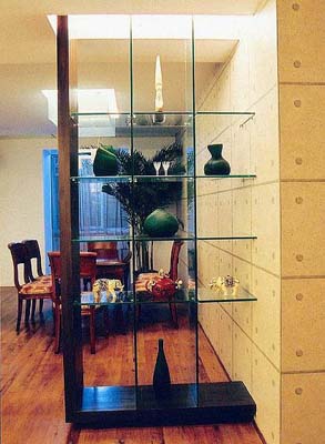 客廳玄關(guān)的間隔應(yīng)以下面實(shí)心,防止外泄,上面以通透為主。因此可以用通透的磨砂玻璃或者空心的博古架之類的。