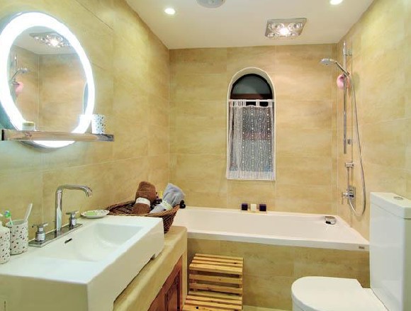 墻面的考慮。衛(wèi)浴間的墻面瓷磚要注重防潮、防水,而且貼瓷磚時(shí)要保證平整,并要與地磚通縫、對齊,以保證墻面與地面的整體感;如遇到給水管路出口,瓷磚的切口要小、適當(dāng),方便給水器上的法蘭罩蓋住切口,使得外觀完美和自然。