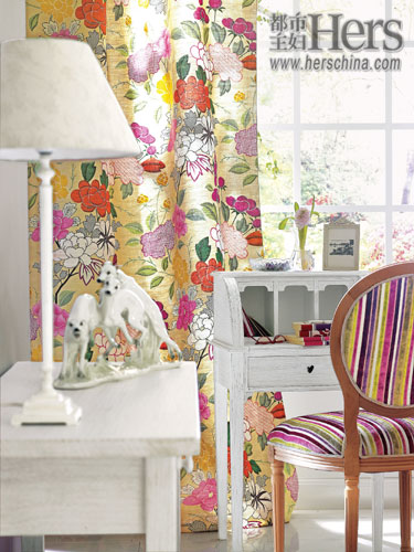 夏季窗簾以麻為上品。抗菌透氣,析光性好,布面肌理豐富。風(fēng)吹過來,窗簾松爽得像要起舞。選擇法國南部鄉(xiāng)村情調(diào)的花色,悠閑的散漫,偏暖的粉彩,可以更好地過濾陽光。如果角度合適,它還有著鐵藝窗花般的效果——當(dāng)光線絲絲縷縷透過花卉的廓形漏進(jìn)來,也許你的地板上、桌面上就有了蕾絲般優(yōu)美的投影。