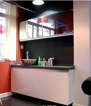 干濕分區(qū)是為了克服以往用水而造成的使用缺陷,減少衛(wèi)生間墻面、地面溢水。以前洗漱和淋浴水花四濺,洗浴完畢水汽很重,需要經(jīng)常擦抹打掃以避免因潮濕而滋生細(xì)菌。用玻璃隔斷合理地干濕分離,使得洗浴和衛(wèi)生間儲物互不干擾。