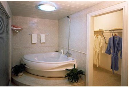 四、門(mén)窗:衛(wèi)浴間最好有窗戶(hù),以利通風(fēng);如果沒(méi)有窗,尤其要注意門(mén)的細(xì)節(jié)。為防止衛(wèi)浴間的水向外溢,門(mén)界要稍高于衛(wèi)浴間內(nèi)側(cè);衛(wèi)浴間的門(mén)與地面的空隙要留得大一點(diǎn),以利于回風(fēng);如果是推拉門(mén),還要在推拉門(mén)與衛(wèi)浴地磚之間做一層防水。