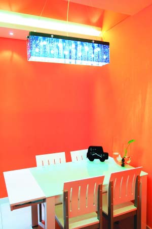 餐廳是由原來的一個臥室改造的,設計師殷勇選用了大膽的橙色作為裝飾,這讓崔鵬和馬天婧開始很不能接受,覺得太艷麗了,但等裝修結束后,夫妻倆看到整體的效果,都覺得十分的滿意。