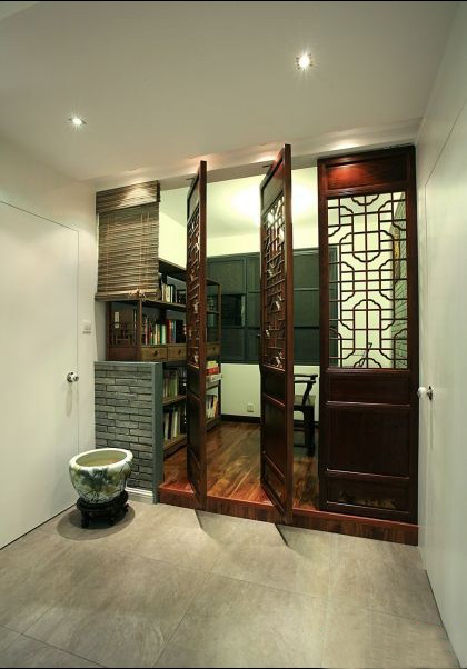 用屏風打造可以翻轉的書房門在隔與露之間找到微妙的平衡。