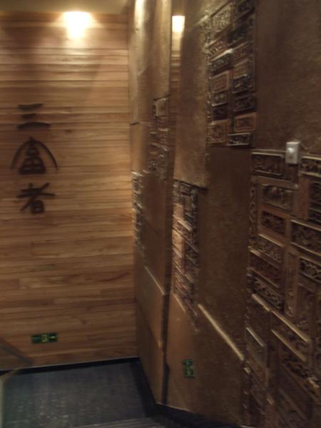 一個業(yè)主朋友推薦我去這家三富者餐廳吃飯,這家餐廳主營韓國菜,經(jīng)受不住誘惑,這周末就去了,總體感覺很不錯,他們家的設計也蠻有趣的,進門下樓才到餐廳,這個樓梯間的設計很不錯,也拍下照片大家可以看看,但是遺憾的就是在樓梯下面的那里,那里其實很漂亮,還有茉莉花香,但是沒有燈光,仔細過去一看還讓人感覺有點不干凈的感覺,要是這里改善的話,我想一定更棒。