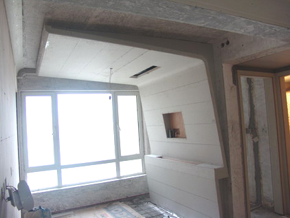 客廳四角設(shè)計成圓弧形,竣工后的效果應(yīng)該是很不錯的,但同時施工的難度也隨之增加了。