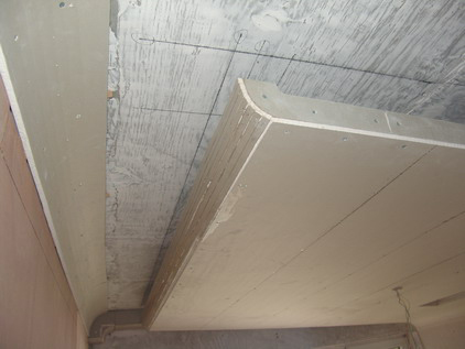 流暢的圓弧是師傅們將石膏板裁成好多細(xì)長條拼成的,頂面還做了精確的彈線定位,這不僅需要技術(shù),還需要師傅們極大的耐心。